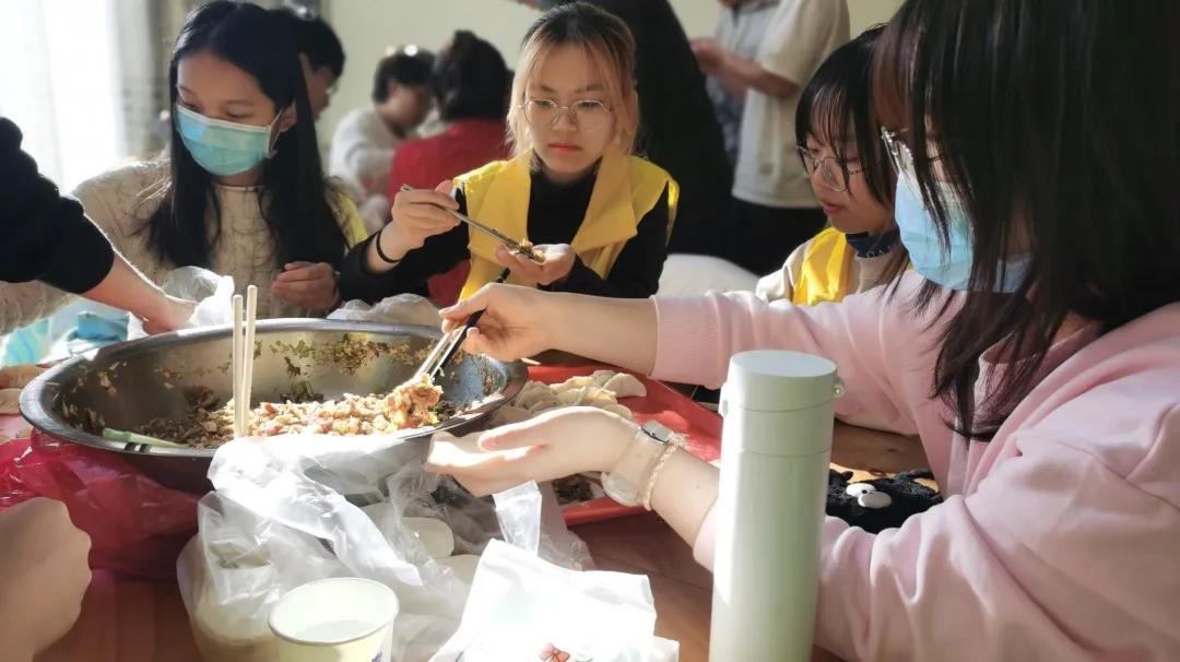 本次送温暖活动主要向宿管、门卫等基层工作人员送发同学们包的水饺。食材筹备阶段,部分同学购置了原材料并在卖家的指导下调制馅料,其余同学于心理中心布置场地。在水饺煮熟后,全班同学将其包装成盒,分头行动,将一份份温暖亲手送至基层工作人员手中。活动开展过程中,同学们积极参与、互相协助,每位同学都在志愿服务活动贡献自己的力量,传达自己的心意。