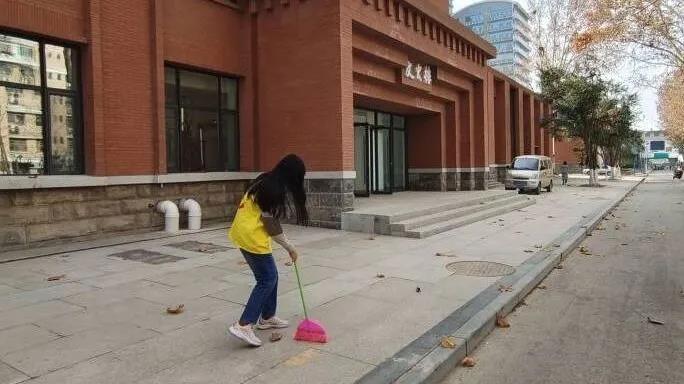 悠久历史的见证,矗立在校园一隅。初冬时节落叶纷纷,散乱在地,遮掩住它的魅力。志愿者们跟文史楼工作人员取得联系后,拿着扫帚便开始帮文史楼换新衣。活动中,尽管落叶不尽,但志愿者们仍认认真真地完成清扫文史楼前的工作,并连带着把周边环境也打扫了一遍。期间还碰到中心校区的同学也在不远处清扫,两支队伍会心一笑。