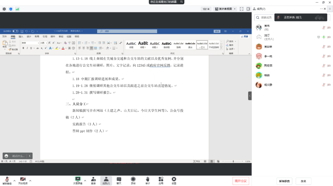 公交车站改进社会实践团队于线上召开社会实践活动动员会。本次会议由刘汀主持,全体成员参加。