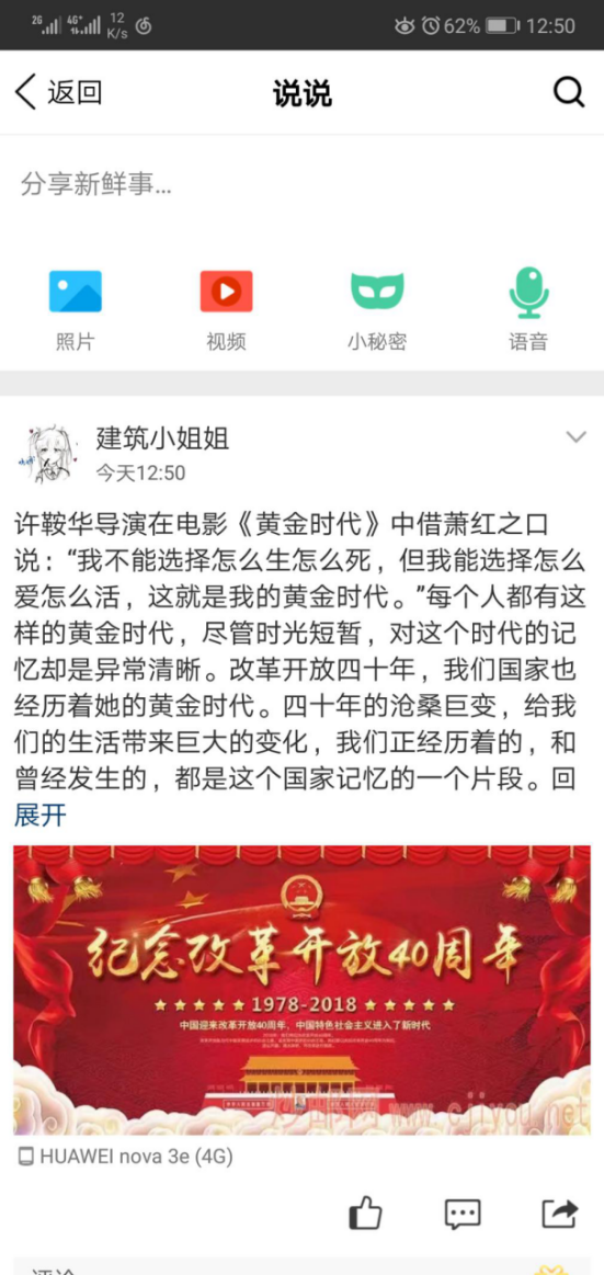 12月20日下午,建筑一班全体同学观看了“改革开放40周年大会”视频,学习了改革开放的背景、进程、历史意义以及宝贵经验。