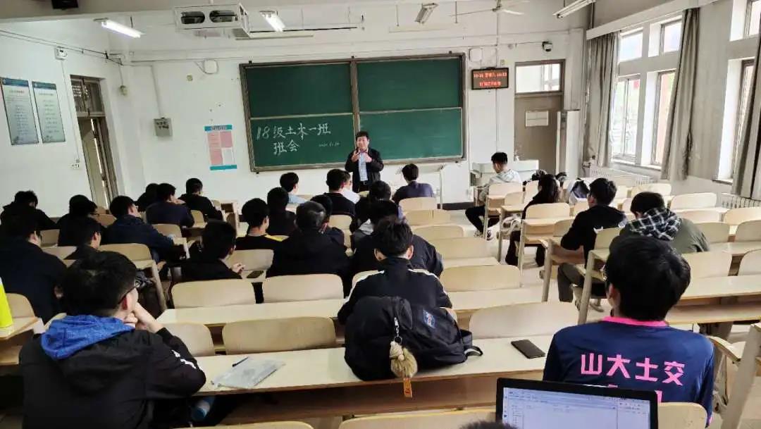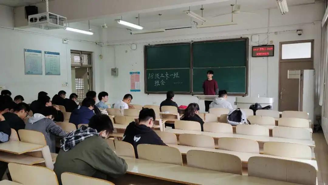 10月10日下午2时,18级土木一班于教学楼5206召开班会,会议由班长朱泉宇主持,班主任王彦明和辅导员许伟强出席会议。