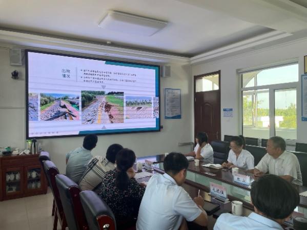 随后,水工党支部与历城黄河河务局遥墙管理段党支部在会议室联合开展主题党日座谈会。座谈会上,历城黄河河务局的工作人员介绍了黄河遥墙管理段在今年汛期的工程管理中存在的难题。其一,今年险工坦石坡发生多次大面积坍塌,而且有几处是重复性坍塌,即修好后又发生坍塌。其二,雨后堤坡会被冲出大量雨淋沟,水沟到处是,沟沟不一样。针对上述问题水工党支部的教师分别从边坡稳定性、水土保持、低影响开发等角度对这些问题提出了宝贵的指导意见。建议对坦石坡坍塌坦石下增加砂土反滤层,坝体内部增加毛细屏障层和增加排水设施等措施,减少雨水对坝体的直接冲刷。同时对坝后侧冲沟的冲刷,采取增加排水设施,夯土上加砂土层,上覆耕作土和铺草皮或植物纤维毯等方式减少坝后侧的冲刷。
