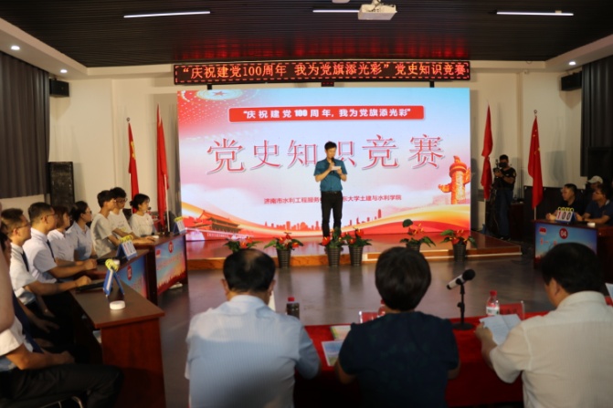 水工党支部、济南市水利工程服务中心机关党支部、济南市乔店水库服务处党支部、济南市大冶水库服务处党支部、济南市杨家横水库服务处党支部和济南市牟汶河闸坝服务处党支部。本次党史知识竞赛活动主要围绕《中国共产党历史》、《中华人民共和国简史》、《改革开放简史》、《社会主义发展简史》和部分热点时事政治内容进行。
