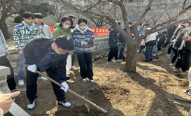 后勤保障部千佛山校区管理办公室工作人员精心做好前期准备工作。活动现场,专业种植人员先为大家介绍了月季花的生长习性、种植方法和注意事项,并作了现场示范和指导。各位研究生党员在养护师傅的耐心指导下,学习如何种植、培土、浇水。师生们分工合作,积极投入到植树行动中。大家手持铲子、种苗,挥洒汗水,热火朝天参与种植的身影,成为校园里一道亮丽的风景。