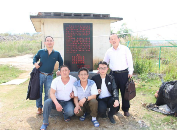 图7 李海燕教授与技术人员在功德碑前合影