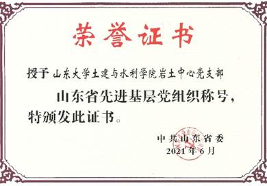 岩土中心党支部被授予“山东省先进基层党组织”荣誉称号。